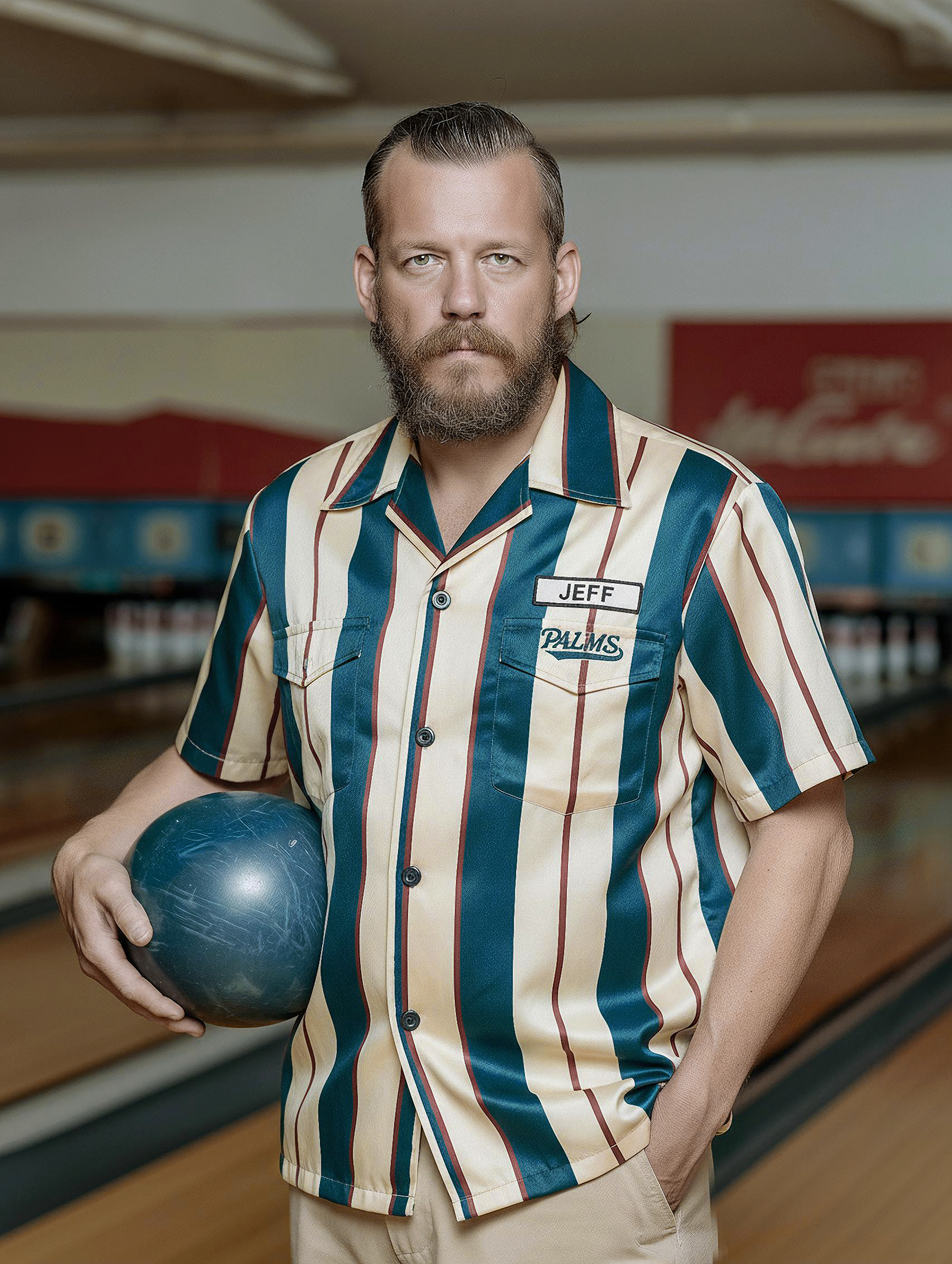 In Ten Pin Alley, recognisable visual elements are interwoven with an imagined reality of a thight community. By applying familiar photographic aesthetics within generated and constructed imagery, the project invites viewers to question what feels real, what feels familiar, and how our perceptions of identity and reality are shaped by what we come to believe as true.
